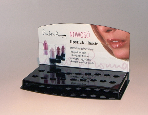 prezentery, stojaki, ekspozytory i pojemniki wykonane z bezbarwnej lub kolorowej plexi